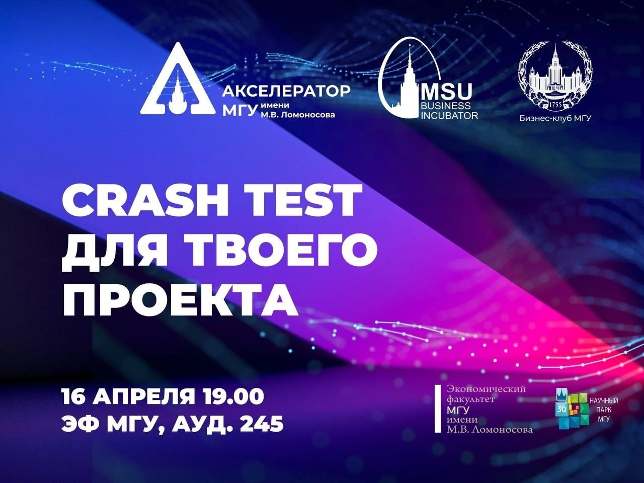Бизнес-Инкубатор МГУ приглашает вас и ваши команды 16 апреля в 19.00 на Crash Test бизнес-проектов.